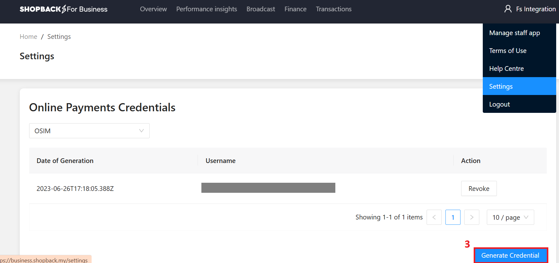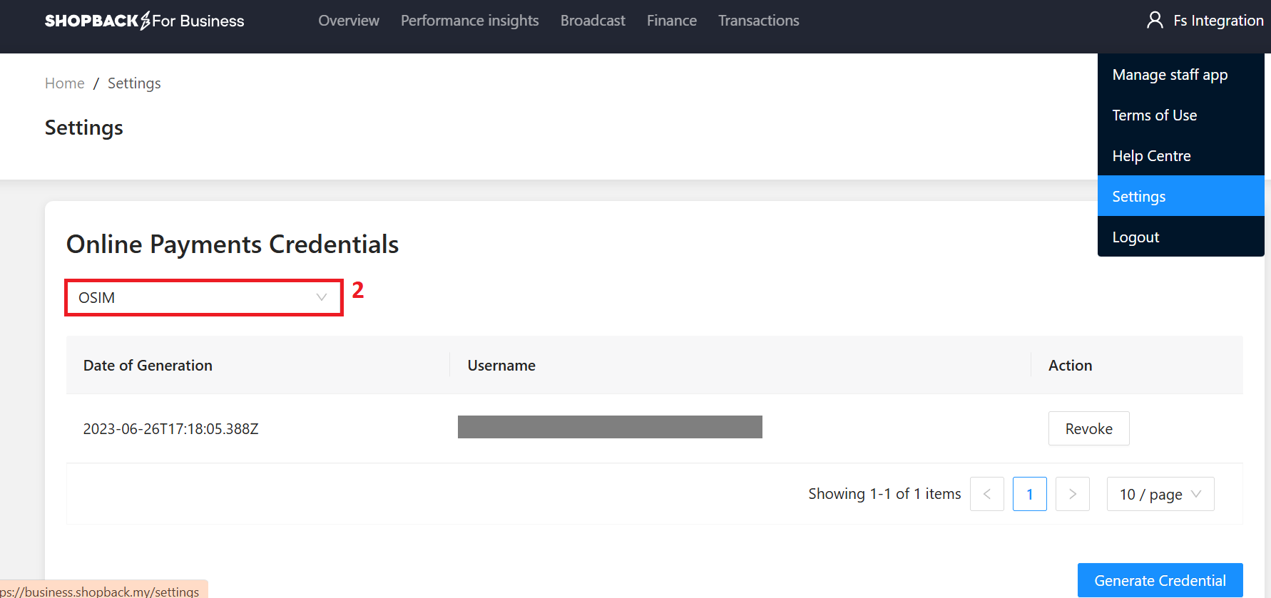 Step 2: Generate your integration credentials